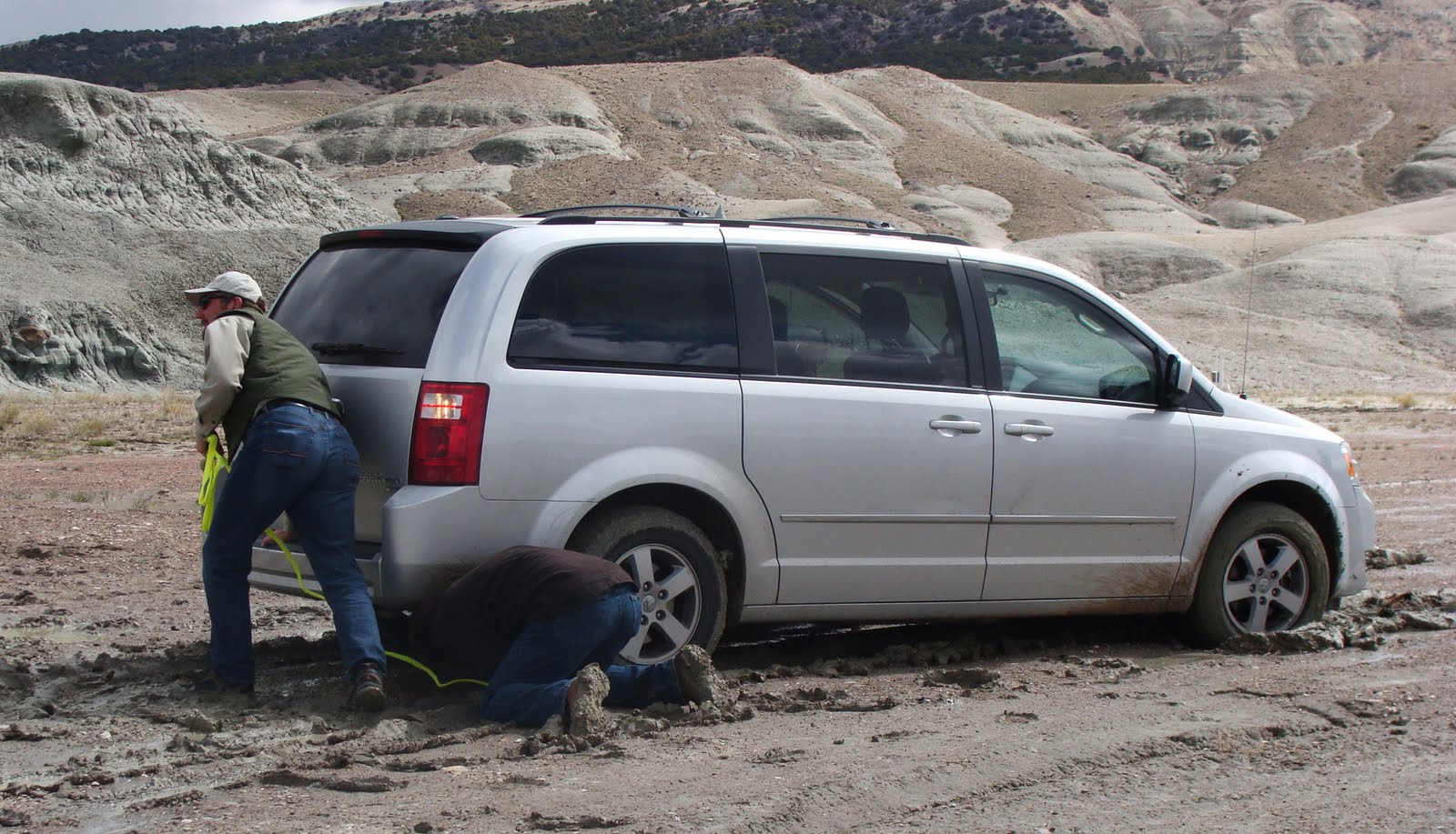 Van stuck in swelling clays of the Bridger Formation, Wyoming. Be careful where you drive when it's wet!