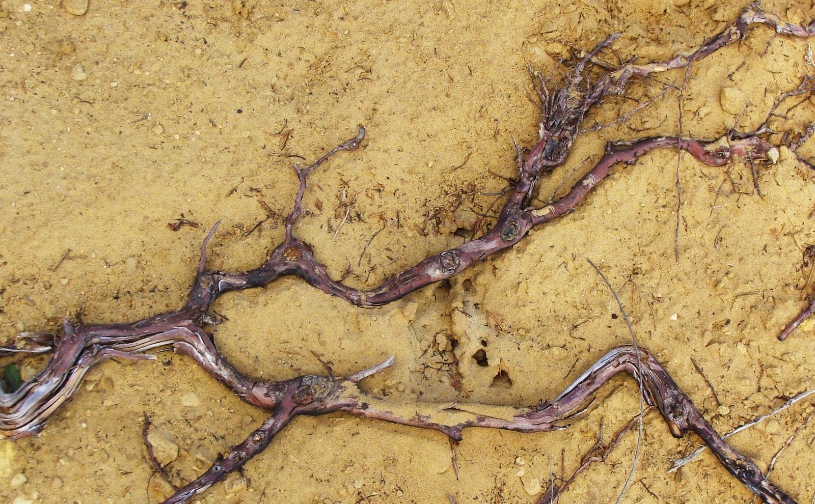 Juniper roots are exposed in places along the sandy top of the bluffs.
