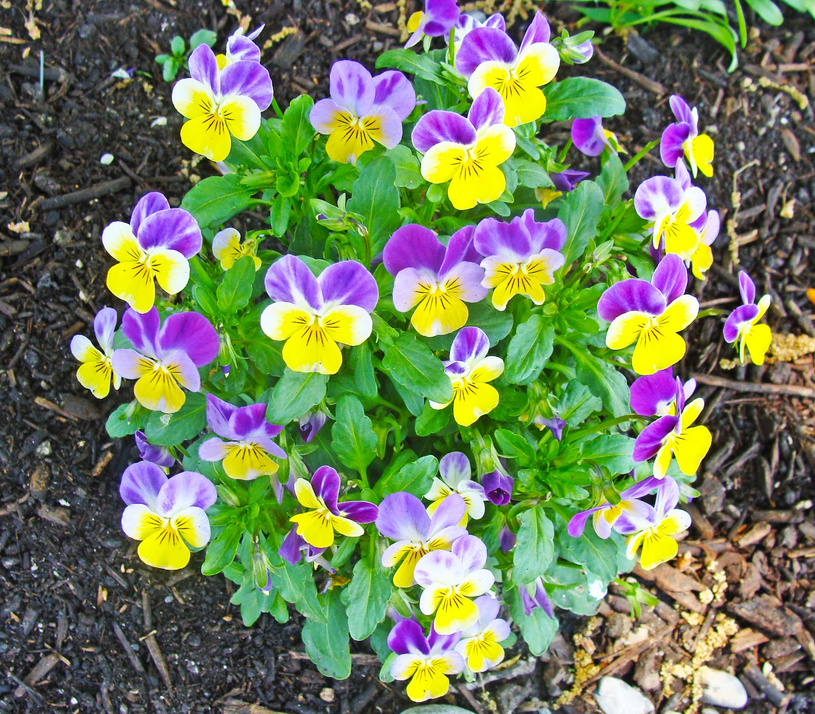 Johnny Jump Ups under the oak  trees.
